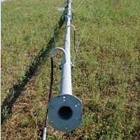In a fixed center pivot, one end of the machine is fixed while the other moves spans clockwise by motor driven tires. At the fixed point end, river or bore well water may be used as the water source transporting water through the main pipes to the sprinklers. The advantage of the center pivot is that it takes less labor and water to irrigate 13-130ha from one water feeding point. A specially designed steel structure can be customized for different lengths of center pivots. While one span with one overhang (80m) is the simplest center pivot system you can choose, our heavy duty design allows for up to 11 spans (650m) with angles and bolt pivot anchors strong enough to withstand high winds.